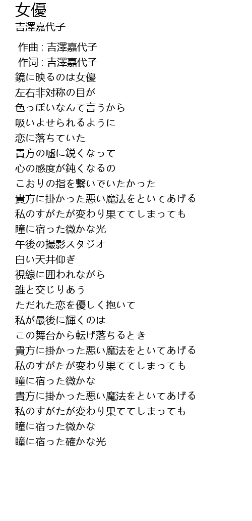 | [00:00.011] | 作词 : 吉澤嘉代子 |