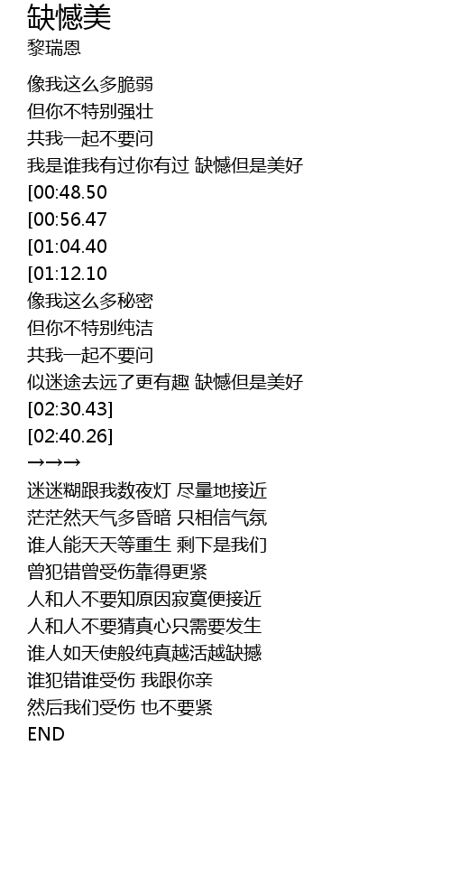 | [00:40.73] | 我是谁我有过你有过 缺憾但是美好 |