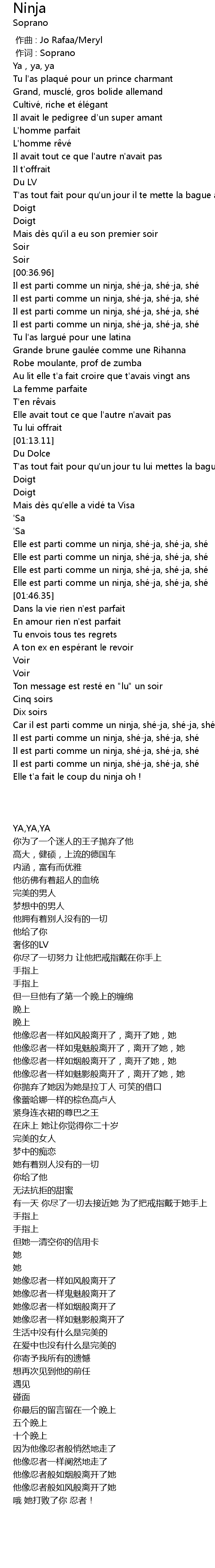 | [01:35.77] | Elle est parti comme un ninja, she ja, she ja, she |