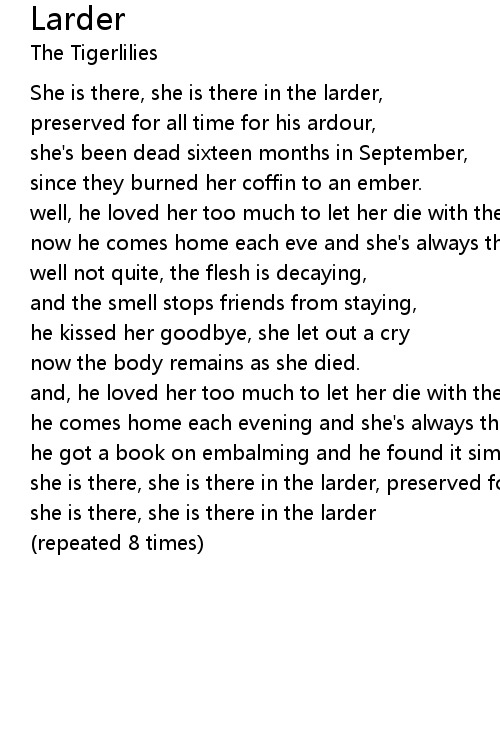 She is there, she is there in the larder, |