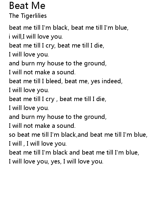beat me till I bleed, beat me, yes indeed, |