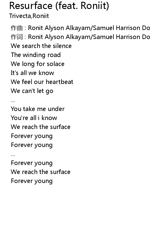 | [00:01.000] | 作词 : Ronit Alyson Alkayam/Samuel Harrison Dobkin |