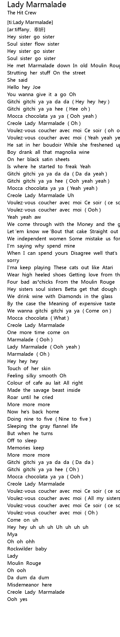 | ti: Lady Marmalade | |