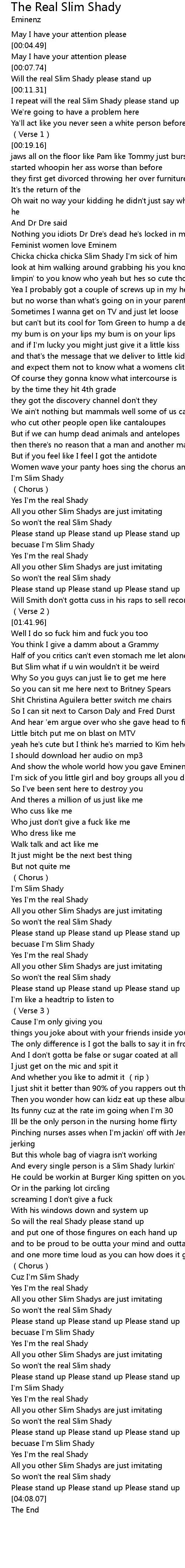 | [00:12.30] | I repeat will the real Slim Shady please stand up |