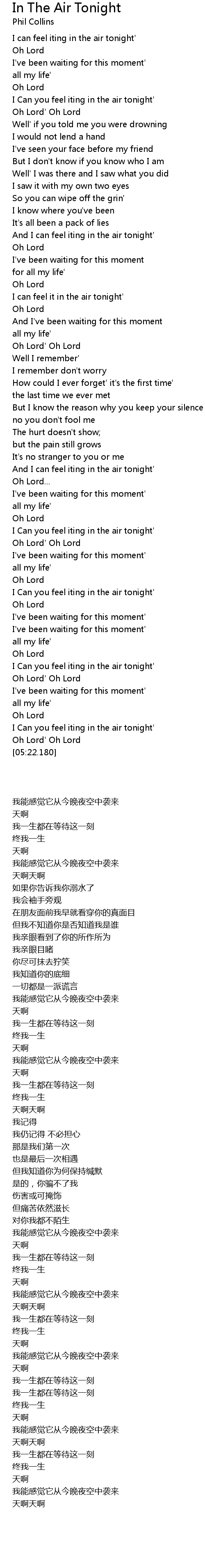 And I can feel iting in the air tonight' |