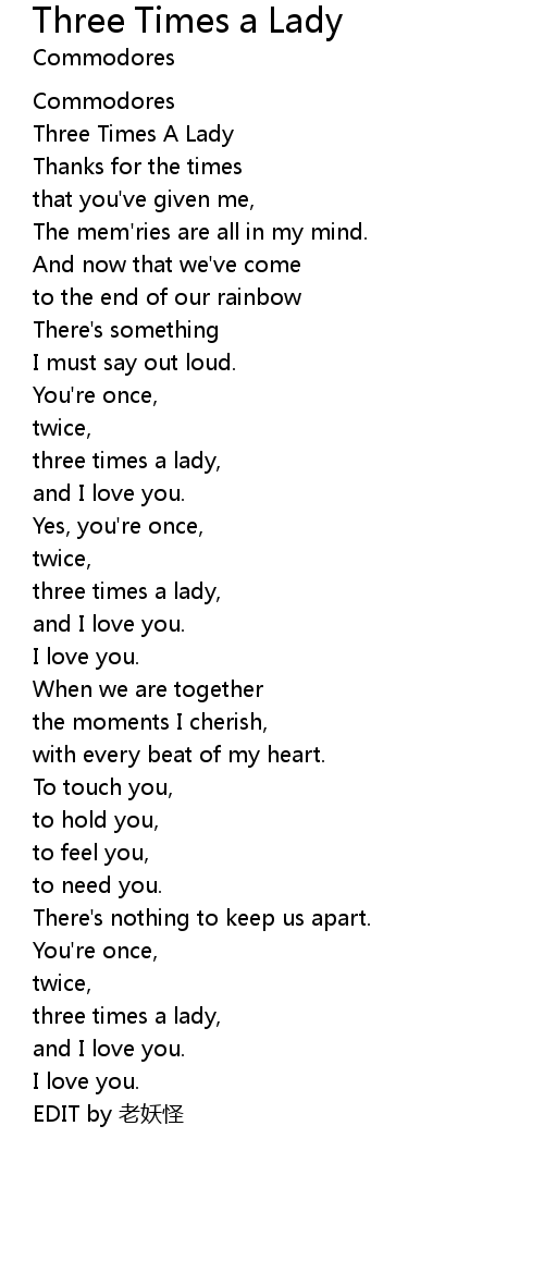 | [00:01.58] | Three Times A Lady |