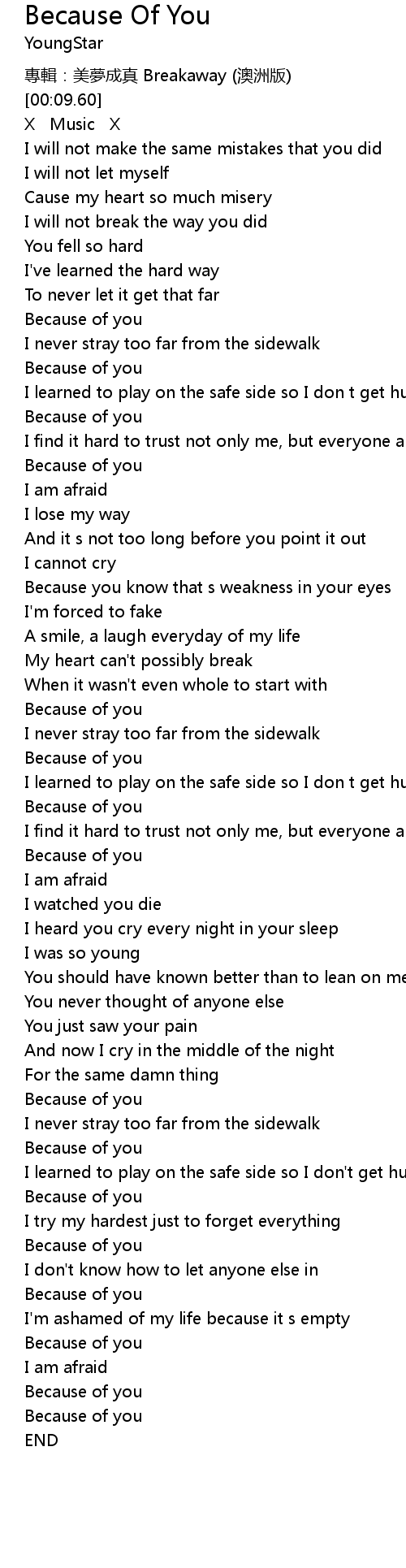 | [02:46.60] | I learned to play on the safe side so I don't get hurt |