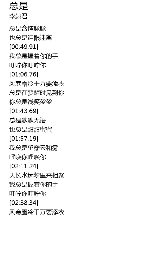 | [01:44.67] | zǒng shì mò mò wú yǔ |