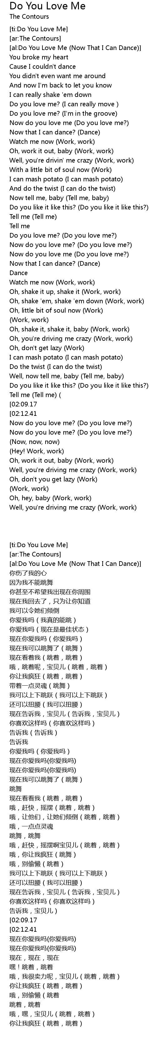| [02:12.59][02:12.41] | Oh, do you love me? Do you love me? |