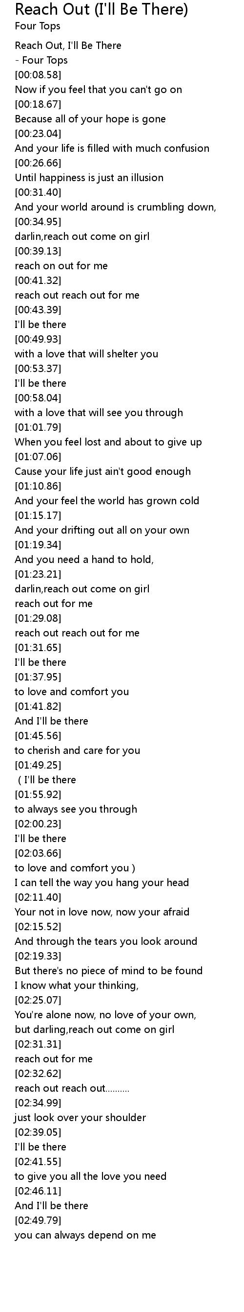 | [00:03.40] | Reach Out, I' ll Be There |