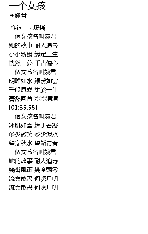 | [00:51.54] | yī gè nǚ hái míng jiào wǎn jūn |