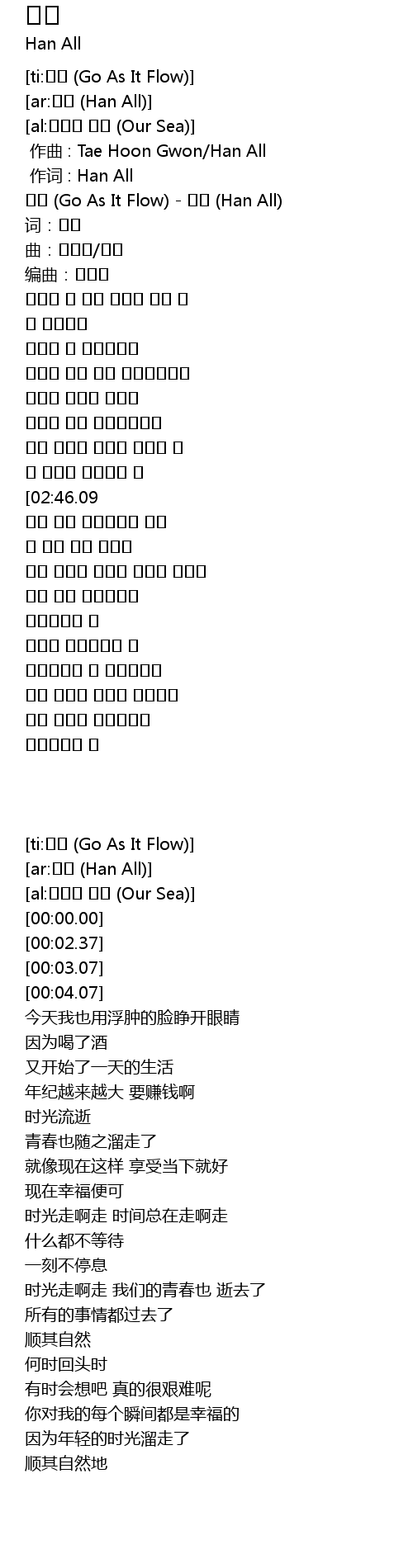| [00:00.00] | 청춘 (Go As It Flow) - 한올 (Han All) |