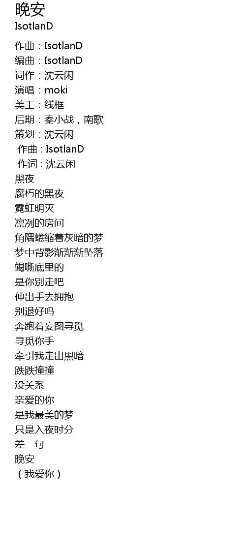 | [00:00.000] | zuò qǔ : IsotlanD |