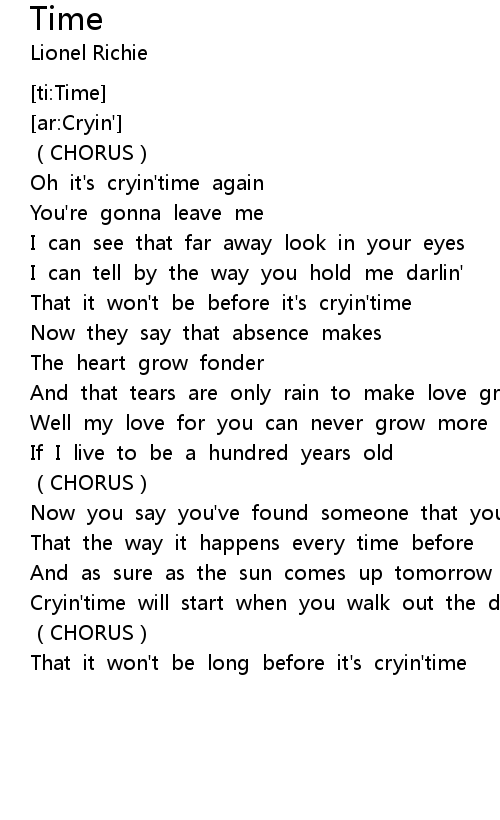 | [00:45.387] | That it won' t be before it' s cryin' time |