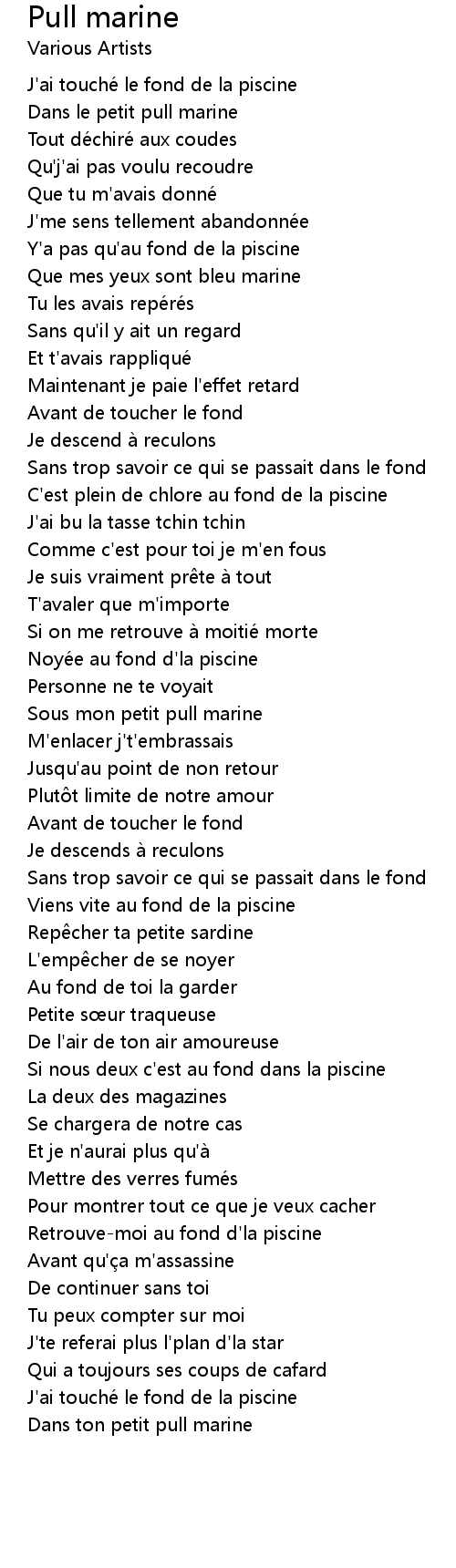 | [00:19.19] | Dans le petit pull marine |