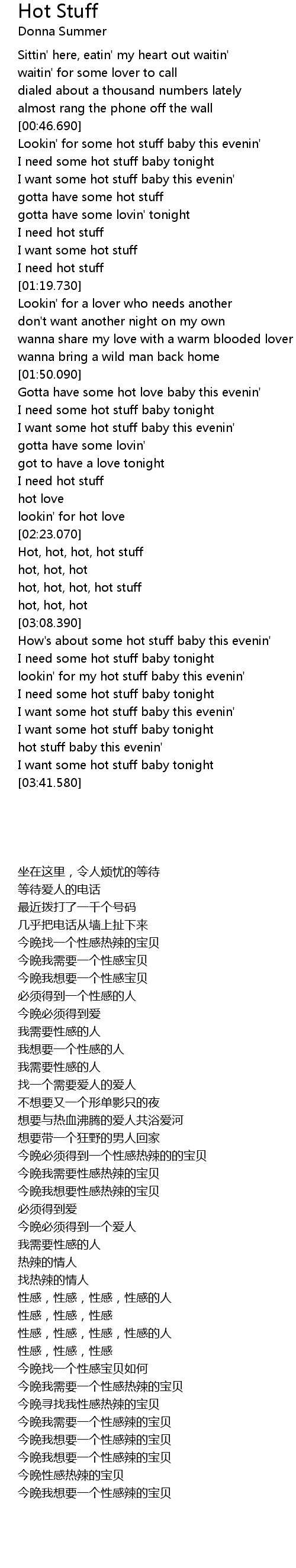 I need some hot stuff baby tonight |