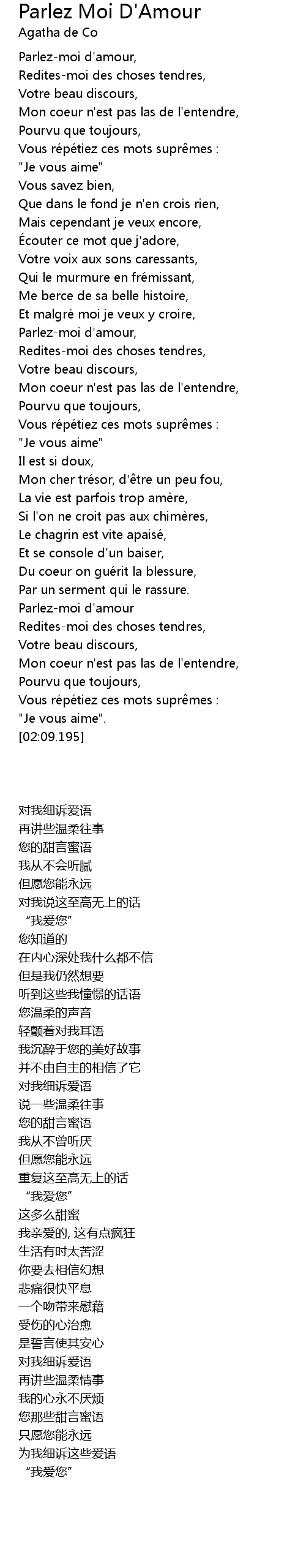 | [01:47.322] | Reditesmoi des choses tendres, |