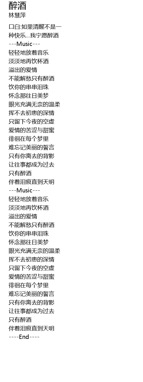 | [00:02.90] | 种快乐...我宁愿醉酒 |