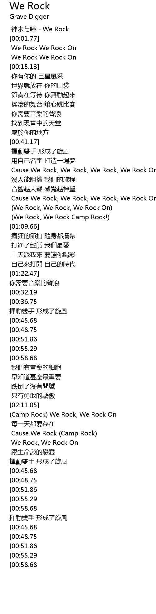 | [01:53.68][00:58.68] | Cause We Rock, We Rock, We Rock, We Rock On |