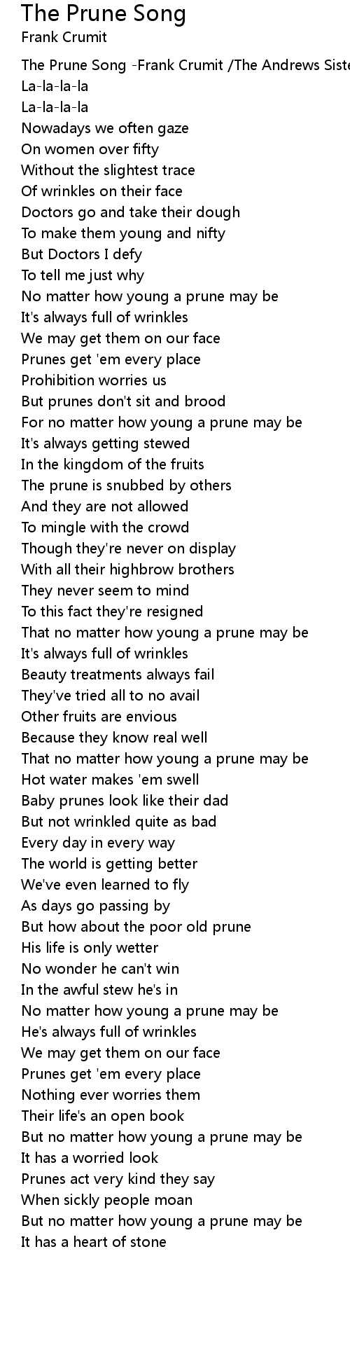 The Prune Song -Frank Crumit /The Andrews Sisters |