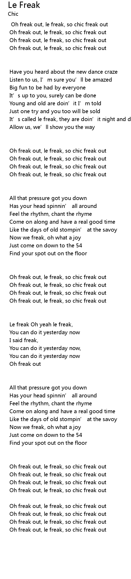| Oh freak out, le freak, so chic freak out |
