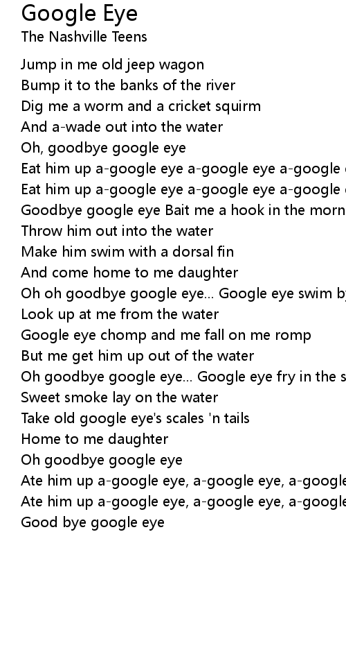 Oh goodbye google eye... Google eye fry in the sizzle |