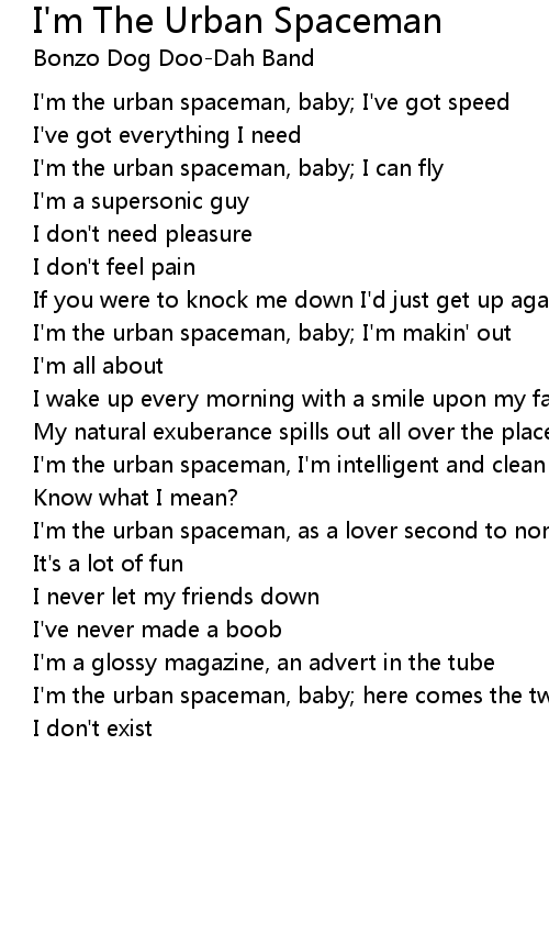 I'm the urban spaceman, I'm intelligent and clean |