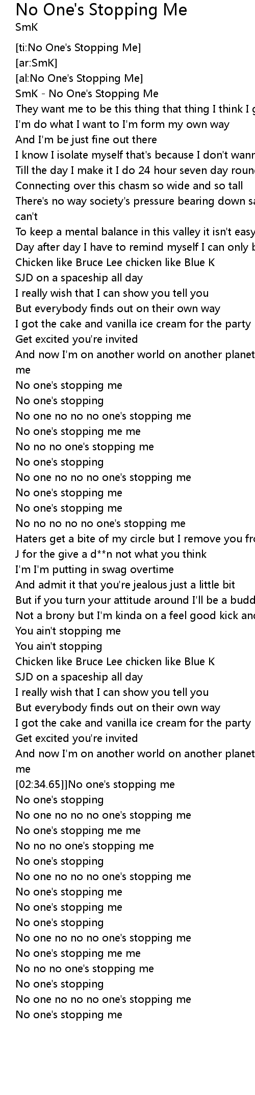 [ti:No One's Stopping Me] |