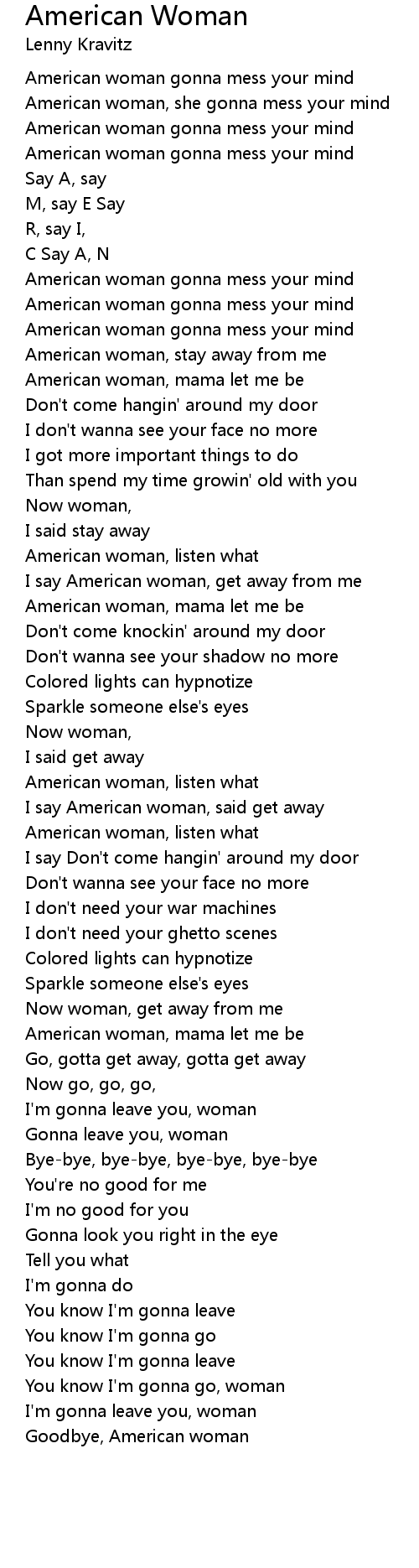 I say American woman, get away from me |
