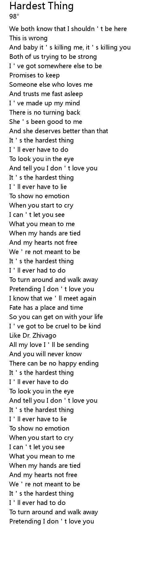 | Song | Hardest Thing |