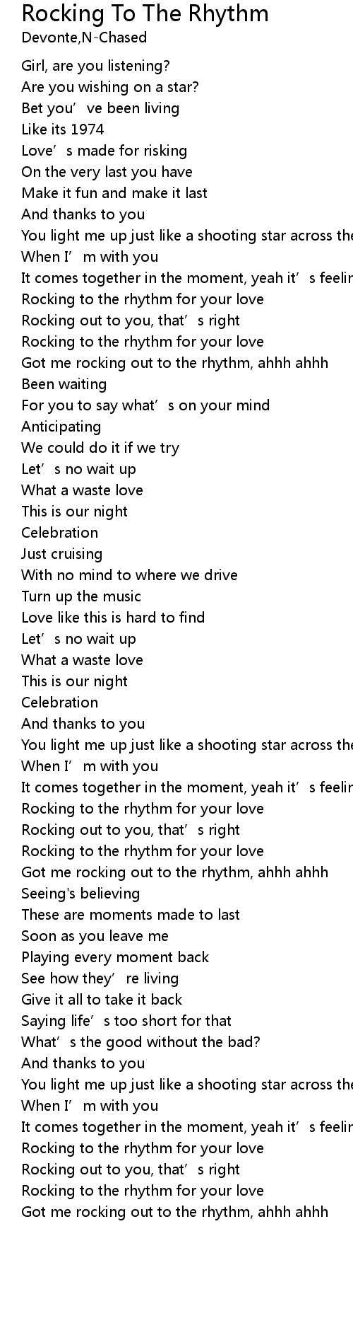 | [00:49.28] | Rocking to the rhythm for your love |