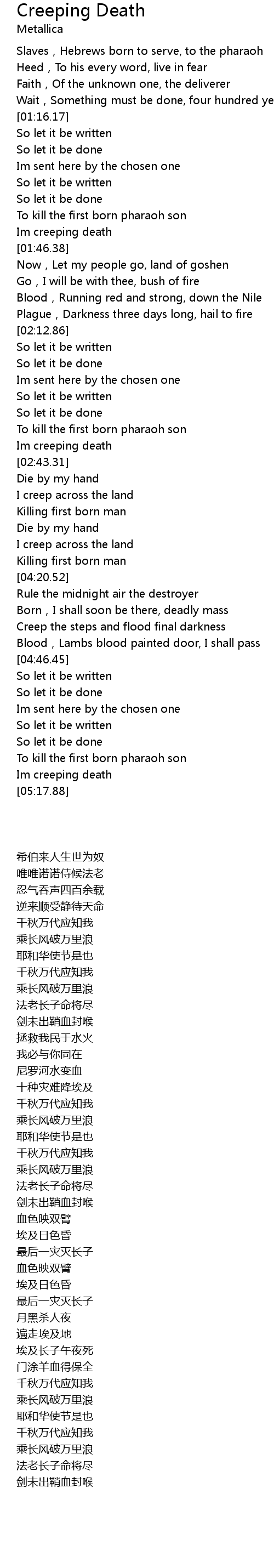 | [00:56.89] | Slaves,Hebrews born to serve, to the pharaoh |