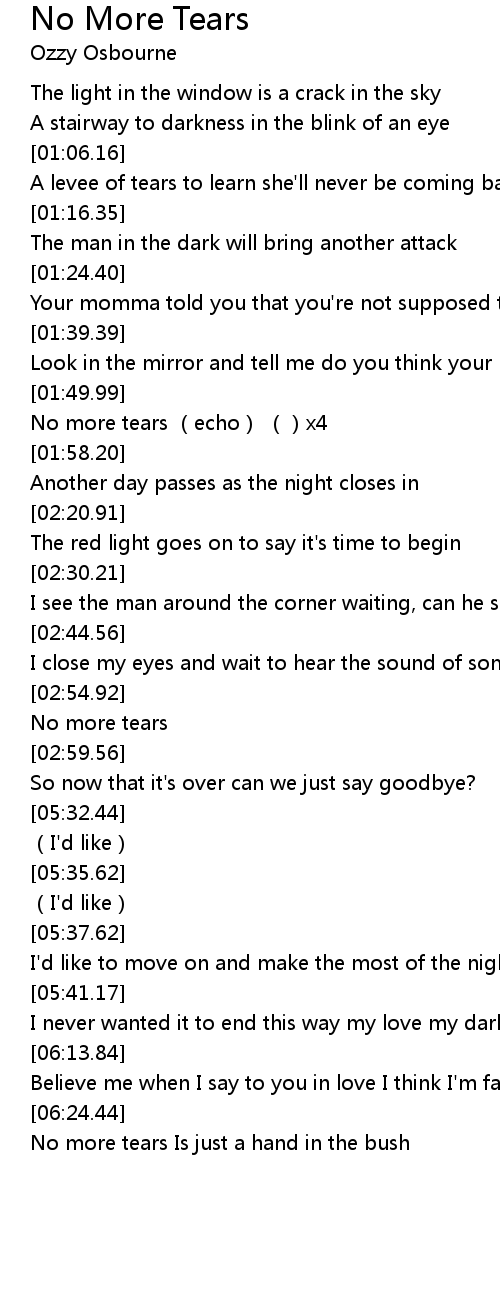 | [06:27.66] | No more tears Is just a hand in the bush |