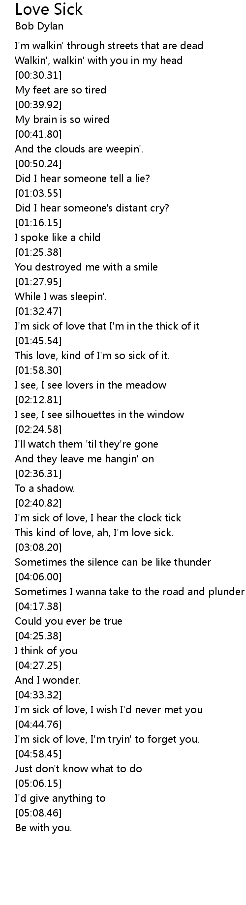 I'm sick of love, I hear the clock tick |
