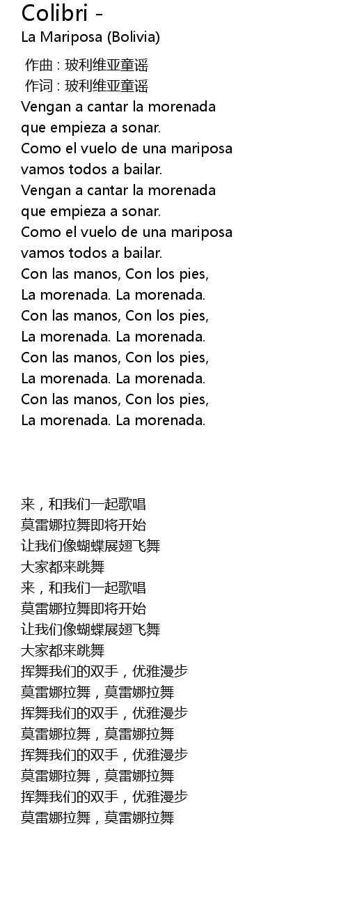 | [00:01.000] | 作词 : 玻利维亚童谣 |
