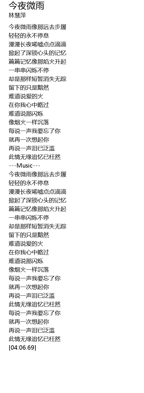 | [00:24.89] | 今夜微雨像那远去步履 |