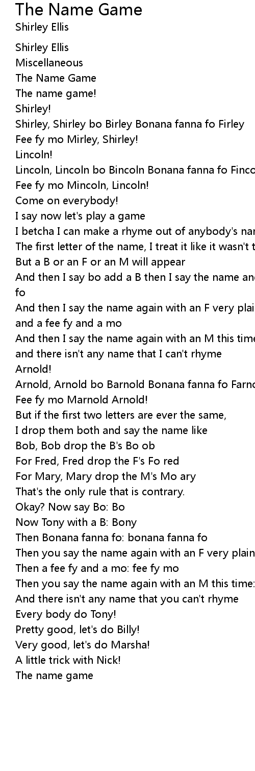 Shirley, Shirley bo Birley Bonana fanna fo Firley |