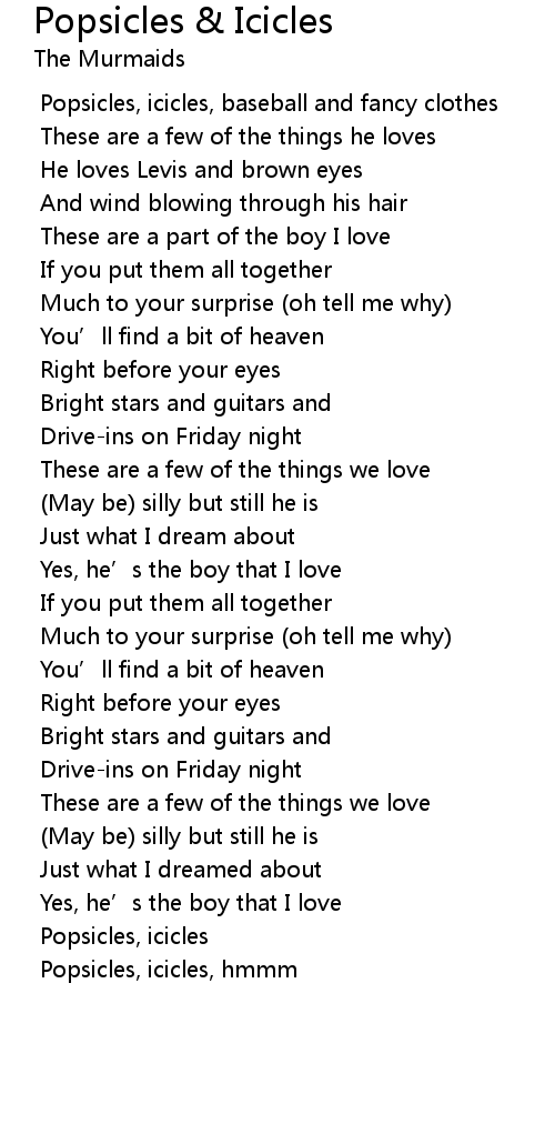 | [02:19.84] | Popsicles, icicles |