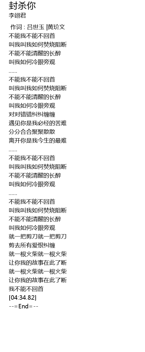 | [04:19.81] | 让你我的故事在此了断 |