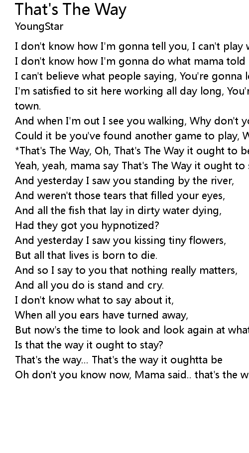Yeah, yeah, mama say That's The Way it ought to stay. |
