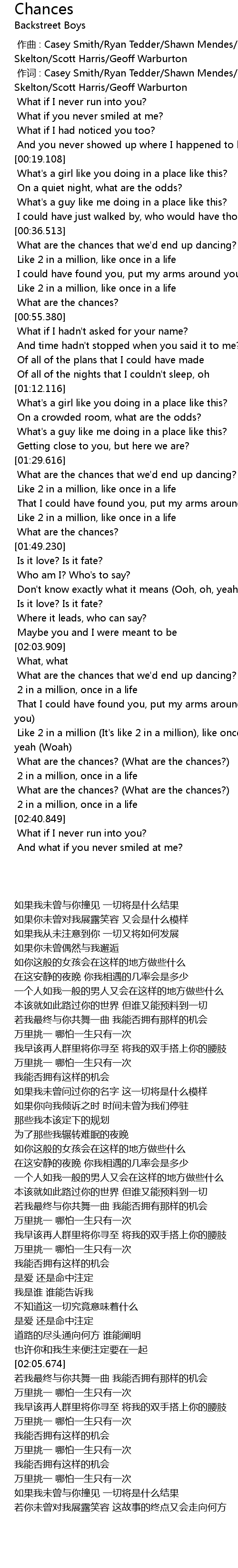 | [02:24.567] | What are the chances? (What are the chances?) |