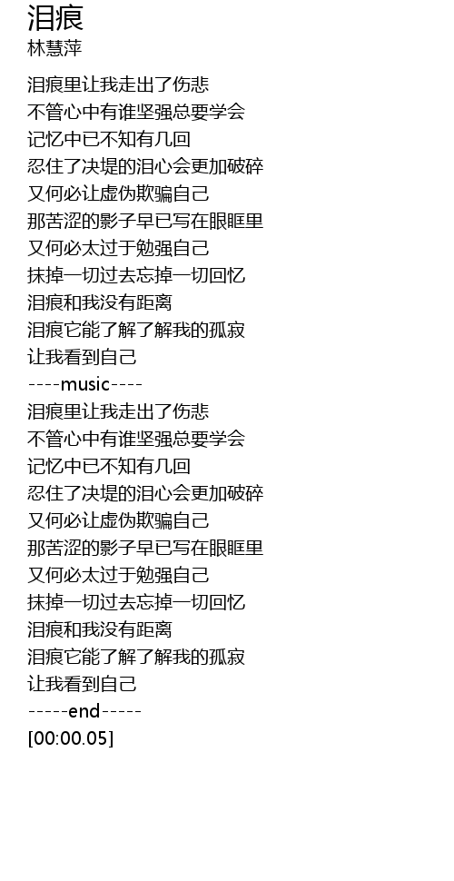 | [01:56.32] | 泪痕它能了解了解我的孤寂 |