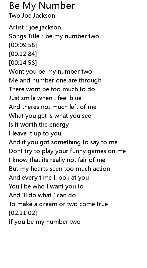 | [00:45.90] | Wont you be my number two |