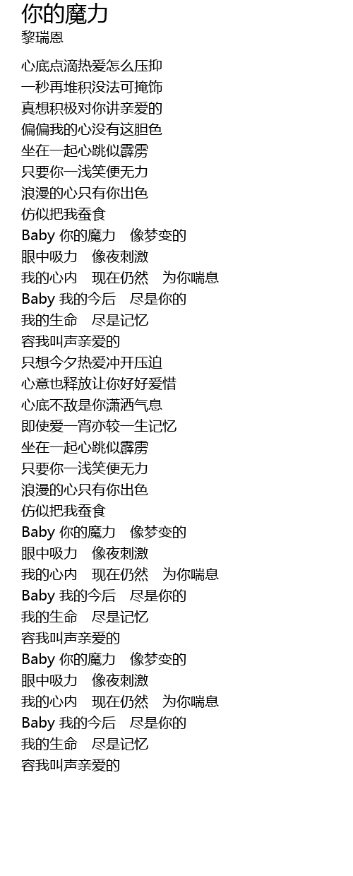| [01:32.57] | Baby 你的魔力 像梦变的 |