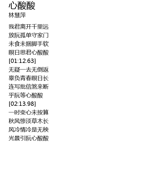 | [00:59.04] | míng rì sī jūn xīn suān suān |