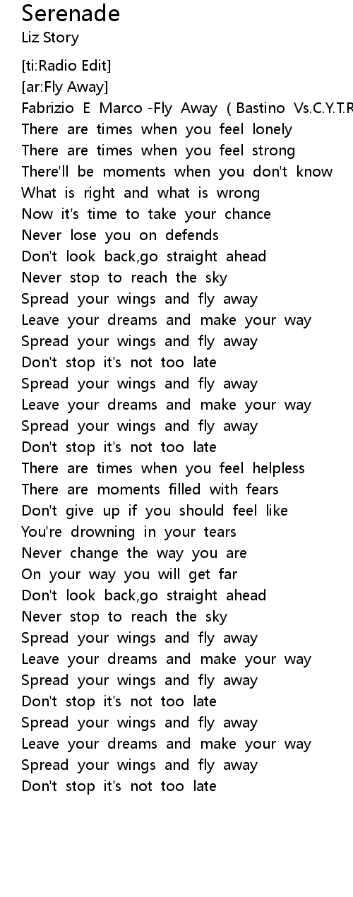 | [00:01.775] | Fabrizio E Marco Fly Away Bastino Vs. C. Y. T. Radio Edit |