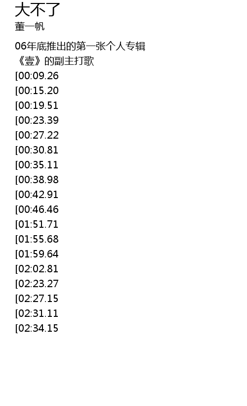 | [03:34.00][02:31.11][02:15.39][01:12.40] | 大不了陪你再寻找 |
