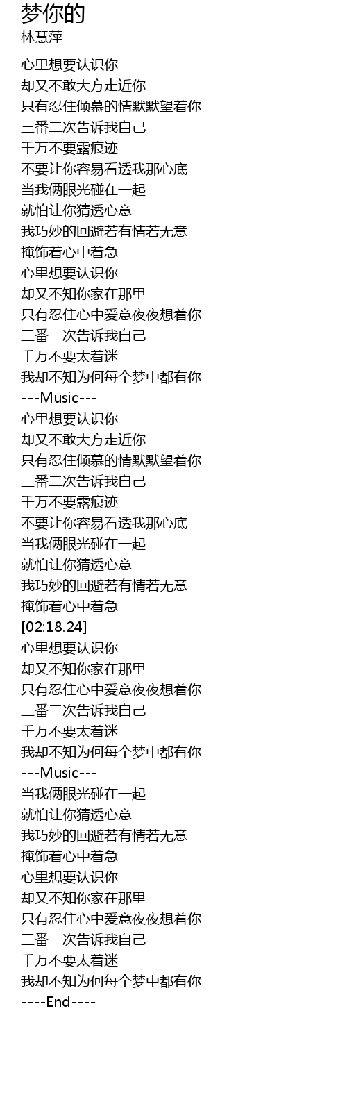 | [02:34.24] | 我却不知为何每个梦中都有你 |