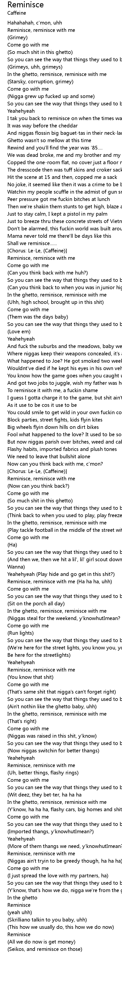In the ghetto, reminisce, reminisce with me |