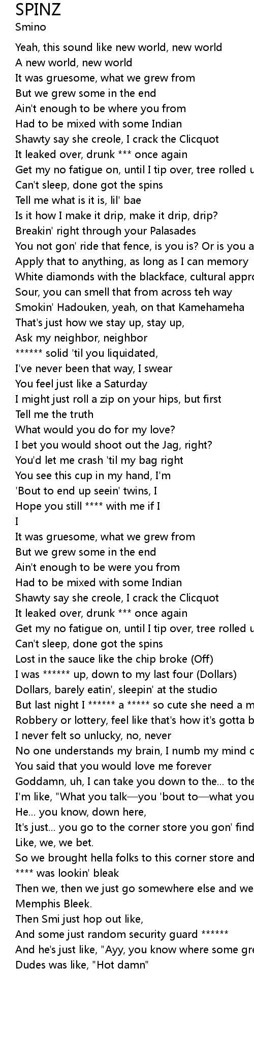 | [00:38.35] | Can't sleep, done got the spins |